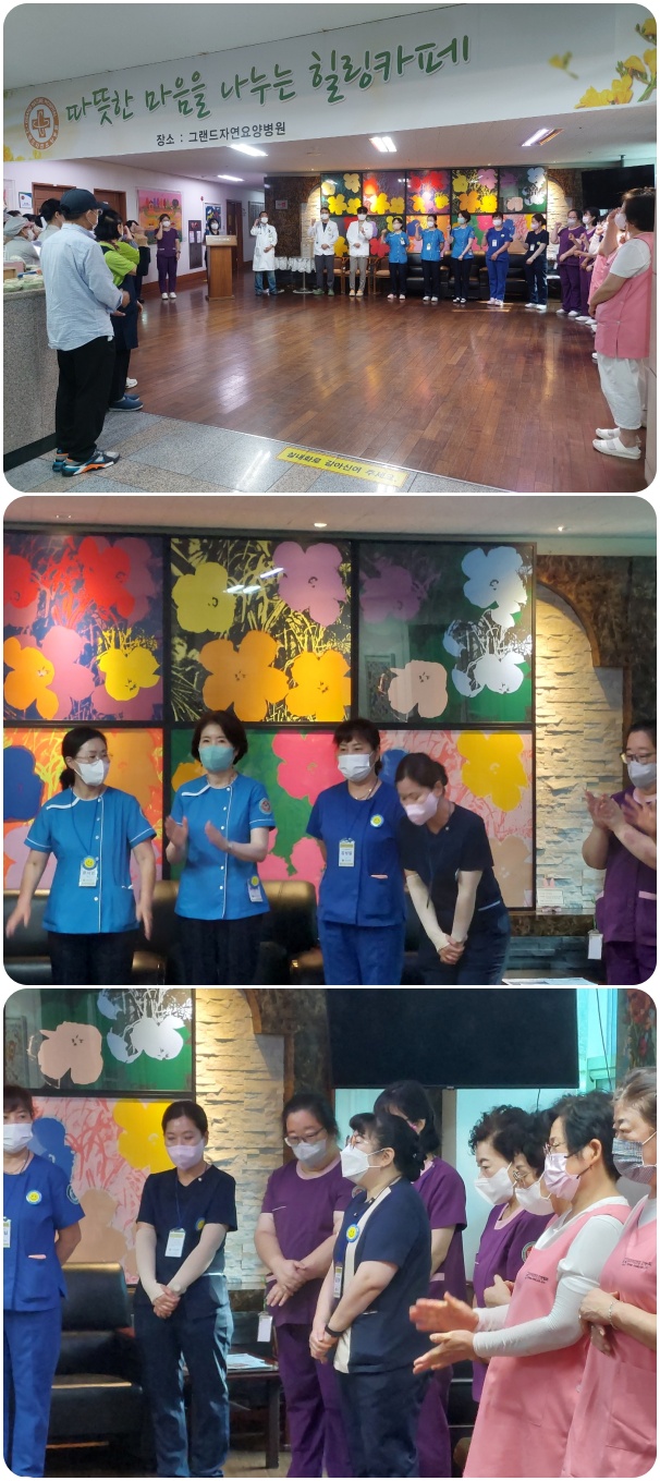 10월 월례회 가져. 페이지 정보 작성자 최고관리자 작성일25-10-02 09:59 조회60회 댓글0건 이전글 다음글 목록 본문 그랜드자연요양병원은 10월 1일 1층 로비에서 전직원들이 참석한 가운데 그랜드자연 월례회를 가졌다. 신입직원들의 인사와 공로상 전달 후, 10월을 준비하는 마음의 다짐으로 병원 구호를 다함께 외치며 월례회를 마쳤다. 댓글목록 등록된 댓글이 없습니다. 이전글 다음글 목록