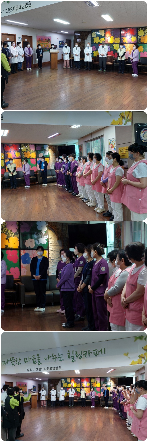 3월 월례회 가져. 페이지 정보 작성자 최고관리자 작성일26-03-04 16:40 조회535회 댓글0건 이전글 다음글 목록 본문 그랜드자연요양병원은 3월 4일 1층 로비에서 전 직원들이 참석한 가운데 그랜드자연 월례회를 가졌다. 신입 직원들의 인사가 이어졌고 봄의 설레임으로 시작되는 3월을 준비하는 마음으로 "그랜드 그랜드 힘!"의 구호와 함께 3월 월례회를 마쳤다. 댓글목록 등록된 댓글이 없습니다. 이전글 다음글 목록
