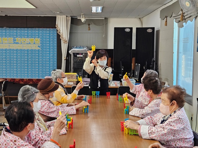 11월의 노인용 교구 활용프로그램 페이지 정보 작성자 최고관리자 작성일25-11-17 11:42 조회292회 댓글0건 이전글 다음글 목록 본문 그랜드자연요양병원에서는 노인생활과학연구소가 개발한 다양한 노인교구를 노인용 교구 활용지도사를 통해 입원하고 있는 어르신들께 적용하여 인지개선, 공간지각, 소통도구로 활용하고 있다. ◈ 그랜드자연요양병원에서는 프로그램 진행 시 개인위생, 방역수칙을 준수하여 활동하고 있습니다.◈ 댓글목록 등록된 댓글이 없습니다. 이전글 다음글 목록
